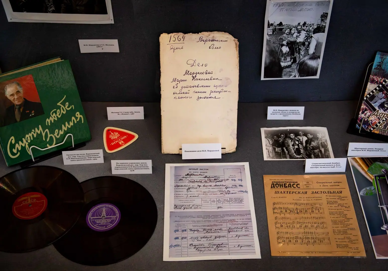 Завершают экспозицию тематические публикации в советских газетах, прижизненные сборники песен и частушек Марии Мордасовой, грампластинки и диск с документальным фильмом о её жизни и творчестве. Здесь же можно прочитать напутствие певицы «на добрую память добрым людям». Выставку дополняют письма поклонников творчества Марии Николаевны из Тулы.
