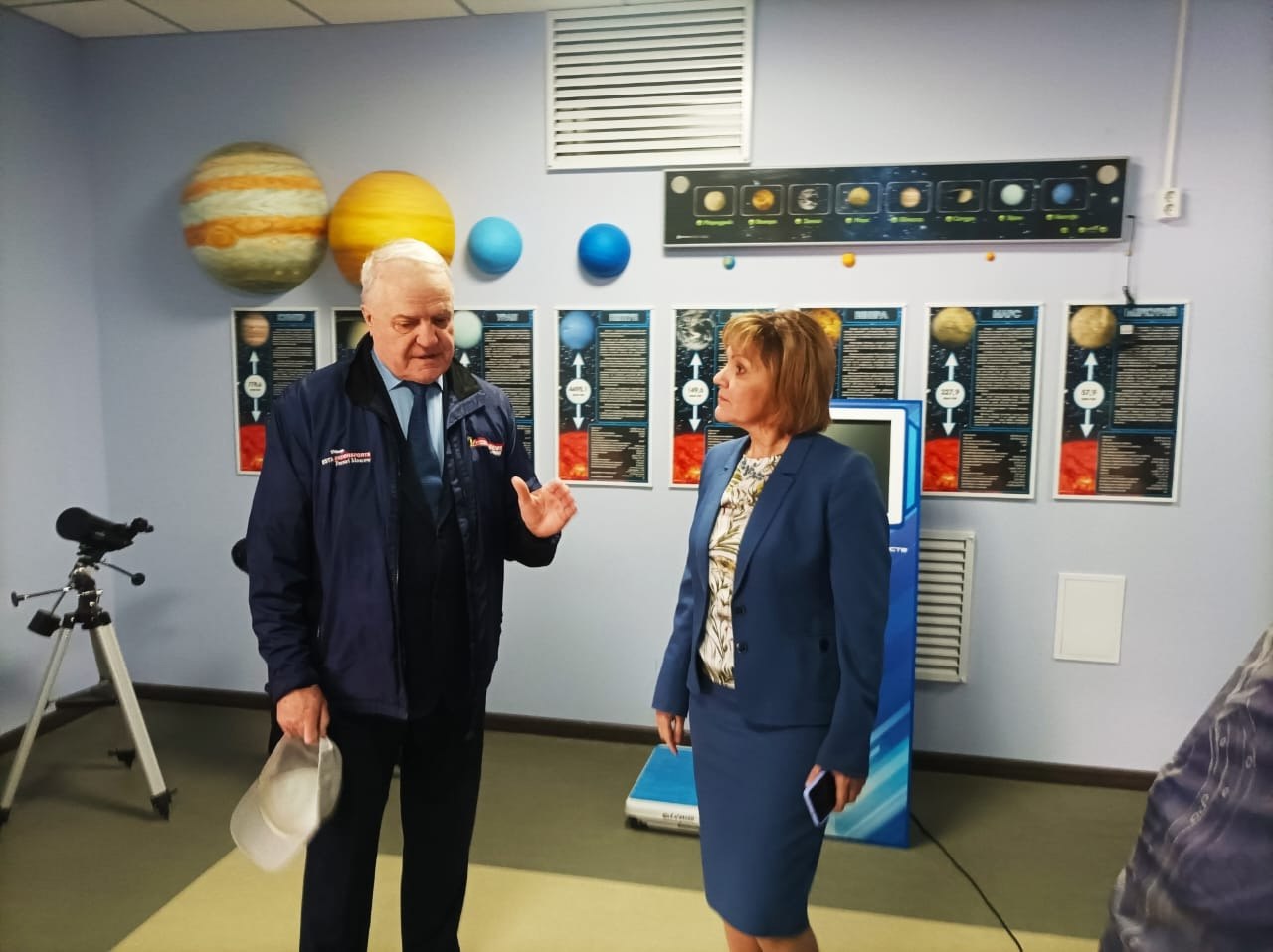 Участники экскурсии посетили кабинеты робототехники, астрономии, биологии, а также киностудию.