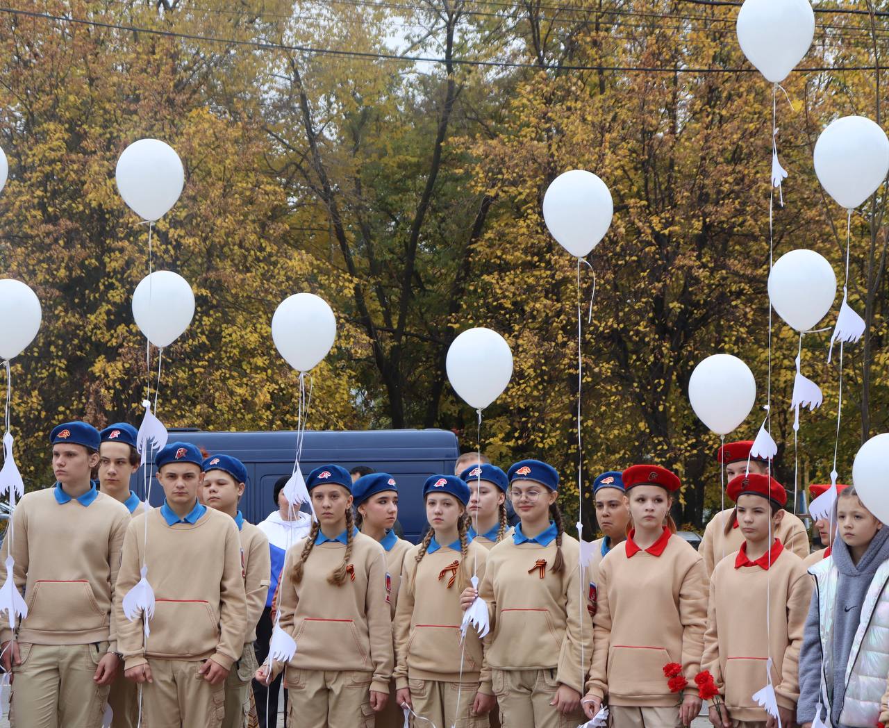 В завершение мероприятия участники возложили цветы и венки к памятнику, а также запустили в небо шары с белыми журавлями из бумаги.