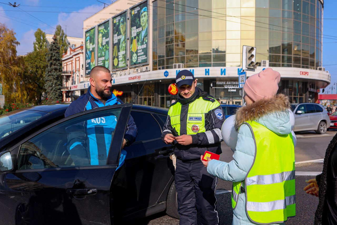 В преддверии Дня автомобилиста, сотрудники городской Госавтоинспекции совместно с членом Общественного совета при ГУ МВД России по Воронежской области Натальей Дуровой и юными инспекторами движения устроили праздничную акцию на оживлённых перекрёстках Воронежа.