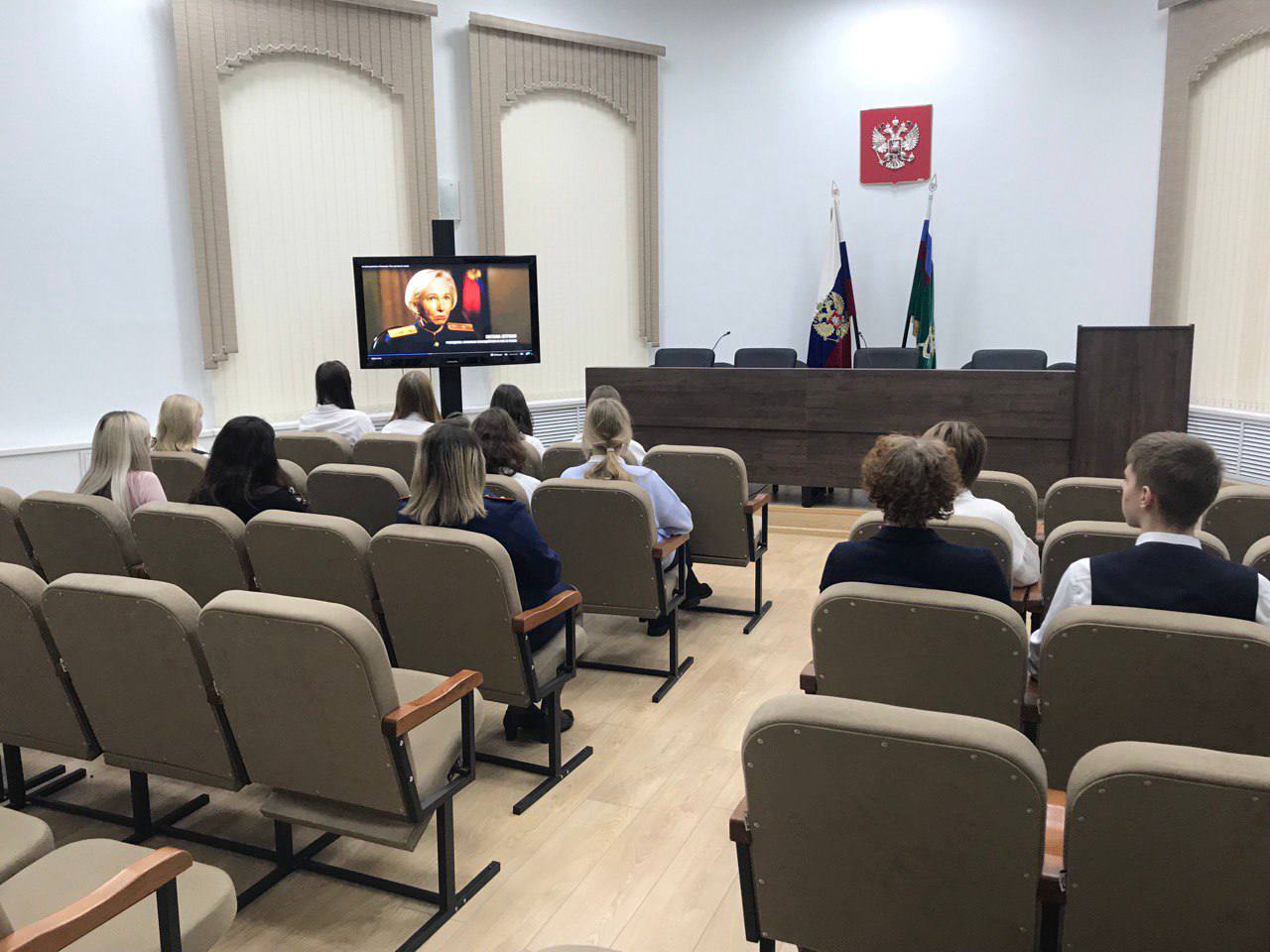 Перед началом показа помощник руководителя управления (по общественно-политической работе) Жукова Олеся Михайловна обратилась к кадетам с напутственным словом, подчеркнув необходимость сохранения исторической памяти, недопустимость фальсификации истории и важность увековечивания подвигов героев Великой Отечественной войны 1941-1945 гг. Сотрудник ведомства также отметила, что для сохранения исторической памяти нужно изучать историю, читать книги, посещать музеи и смотреть патриотические фильмы.