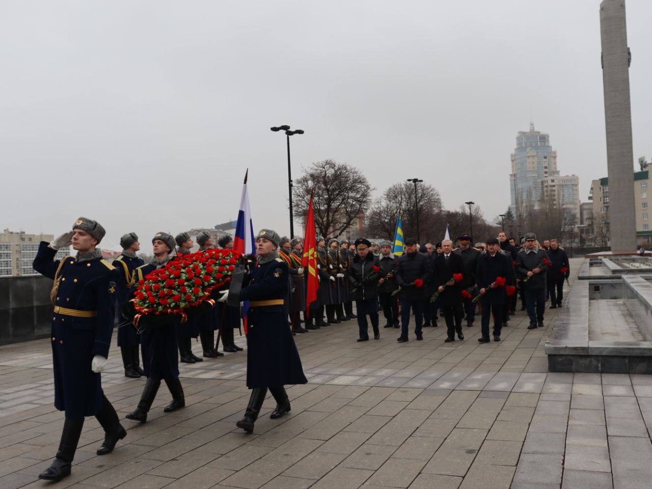 Сегодня руководитель следственного управления Следственного комитета Российской Федерации по Воронежской области Михаил Алексеевич Селюков принял участие в церемонии возложения цветов и венков к могиле Неизвестного Солдата.