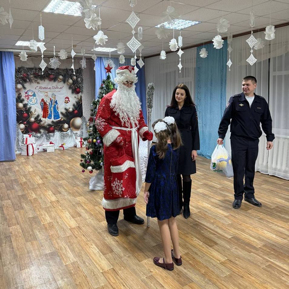 Майор полиции Наталья Черенкова и капитан полиции Александр Коломыцев поздравили детей с наступающим праздником, пожелали успехов и счастья, а также напомнили о важности соблюдения законов и правил безопасности.