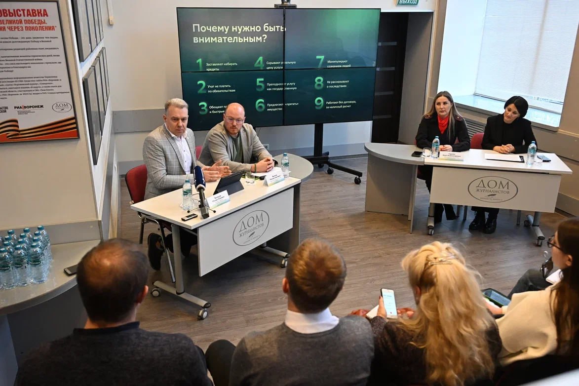 В областном Доме журналистов прошёл круглый стол с участием сотрудников регионального Главка и ПАО Сбербанк, посвящённый вопросам урегулирования кредитной задолженности и профилактики мошенничества. В нем приняли участие оперуполномоченный по особо важным делам УБК ГУ МВД России по Воронежской области Ольга Гудкова, заместитель председателя Центрально-Черноземного банка ПАО Сбербанк Михаил Белоусов, директор регионального центра по урегулированию задолженности Максим Беляков.