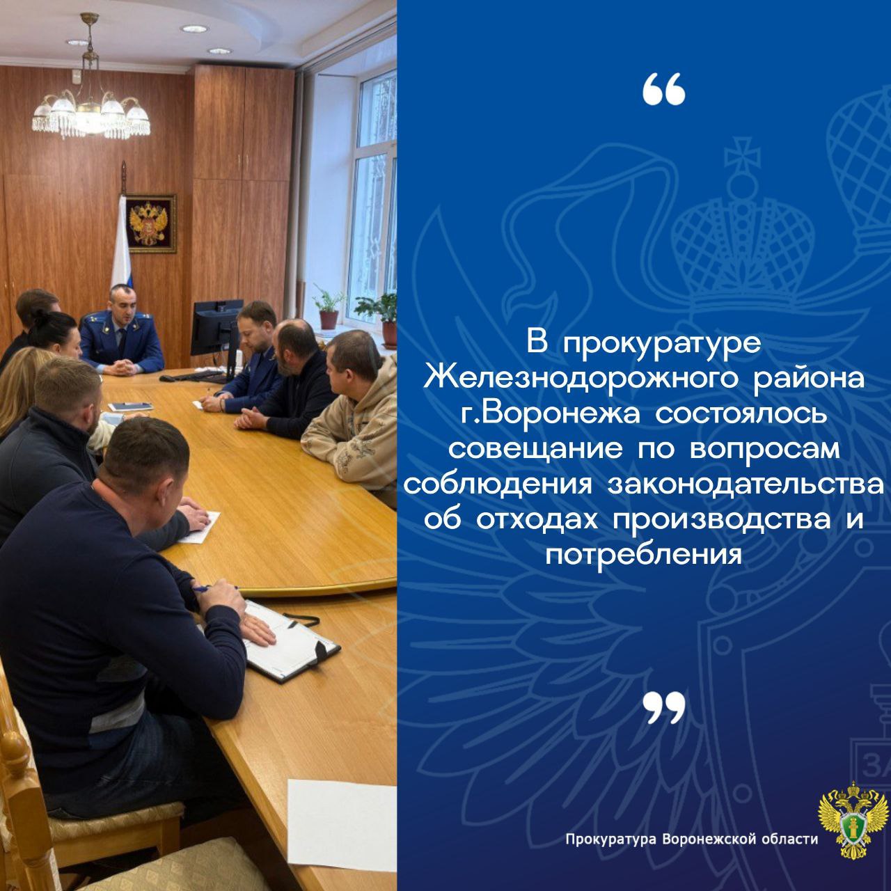 Прокурор Железнодорожного района города Воронежа Юрий Болдырев провел совещание с участием представителей управы района, регионального оператора по обращению с твердыми коммунальными отходами АО «Экотехнологии», директоров крупнейших управляющих компаний района по вопросам соблюдения законодательства об отходах производства и потребления.