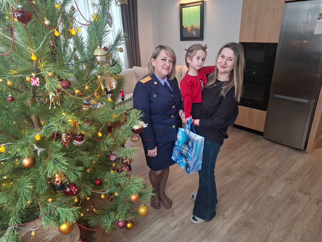 Представитель Женского совета - помощник руководителя регионального следственного управления Следственного комитета Российской Федерации (по общественно-политической работе) Олеся Михайловна Жукова навестила семьи сотрудников следственного управления, проходящих службу на новых территориях, чтобы поздравить их с новогодними праздниками.