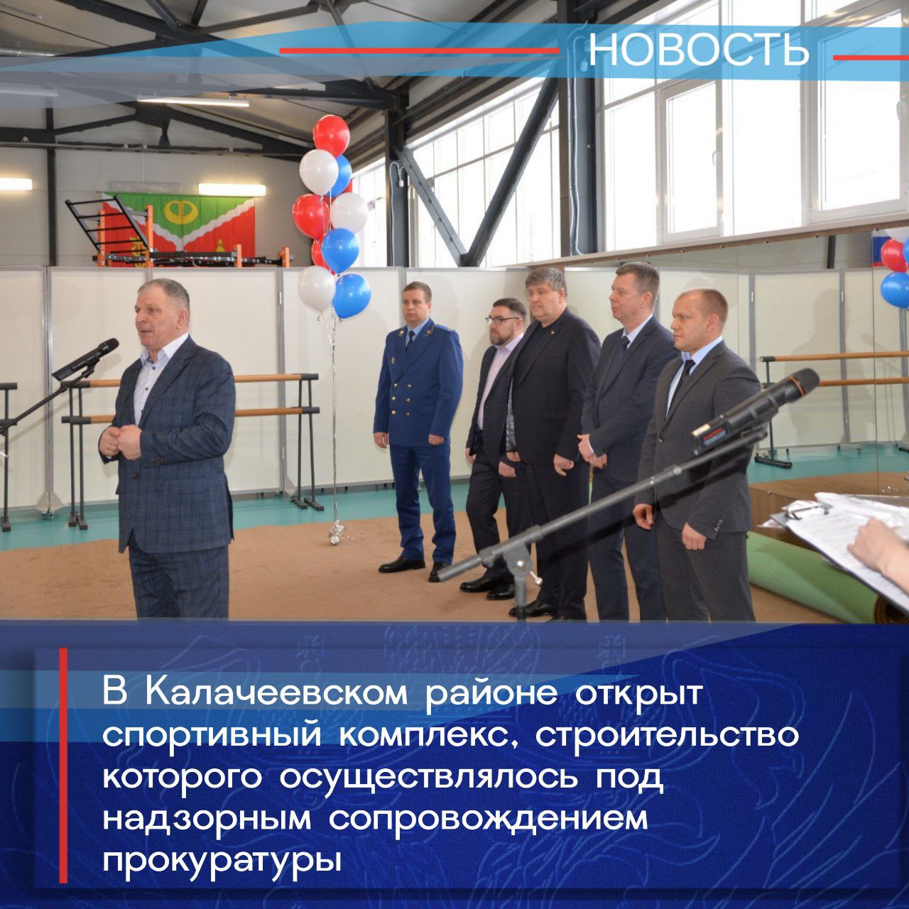 Прокурор Калачеевского района Дмитрий Лесных принял участие в открытии спортивного комплекса «Юность». Строительство объекта осуществлялось под надзорным сопровождением прокуратуры района.
