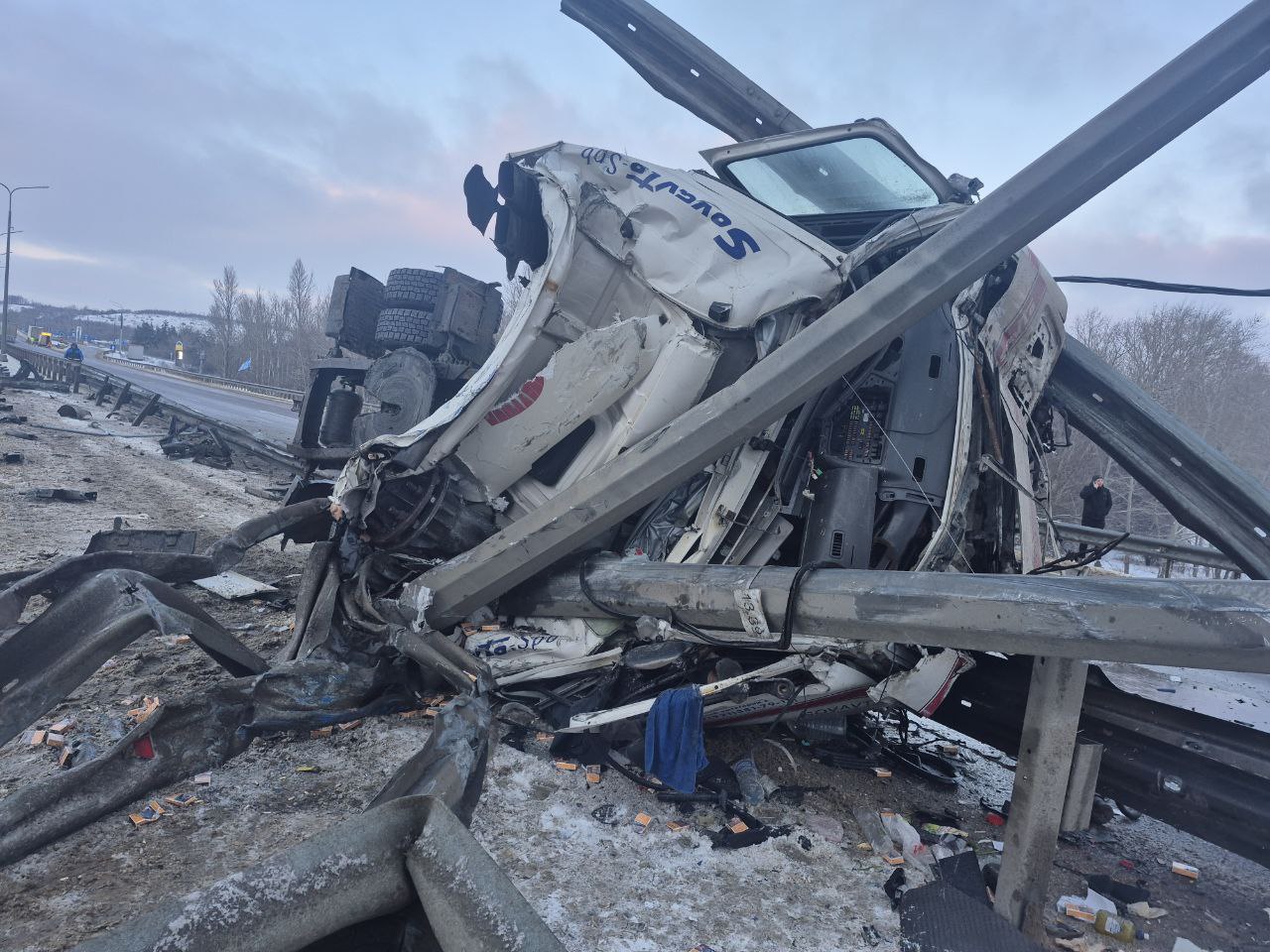 В Богучарском районе госавтоинспекторы устанавливают обстоятельства столкновения большегрузов, в результате которого погиб водитель