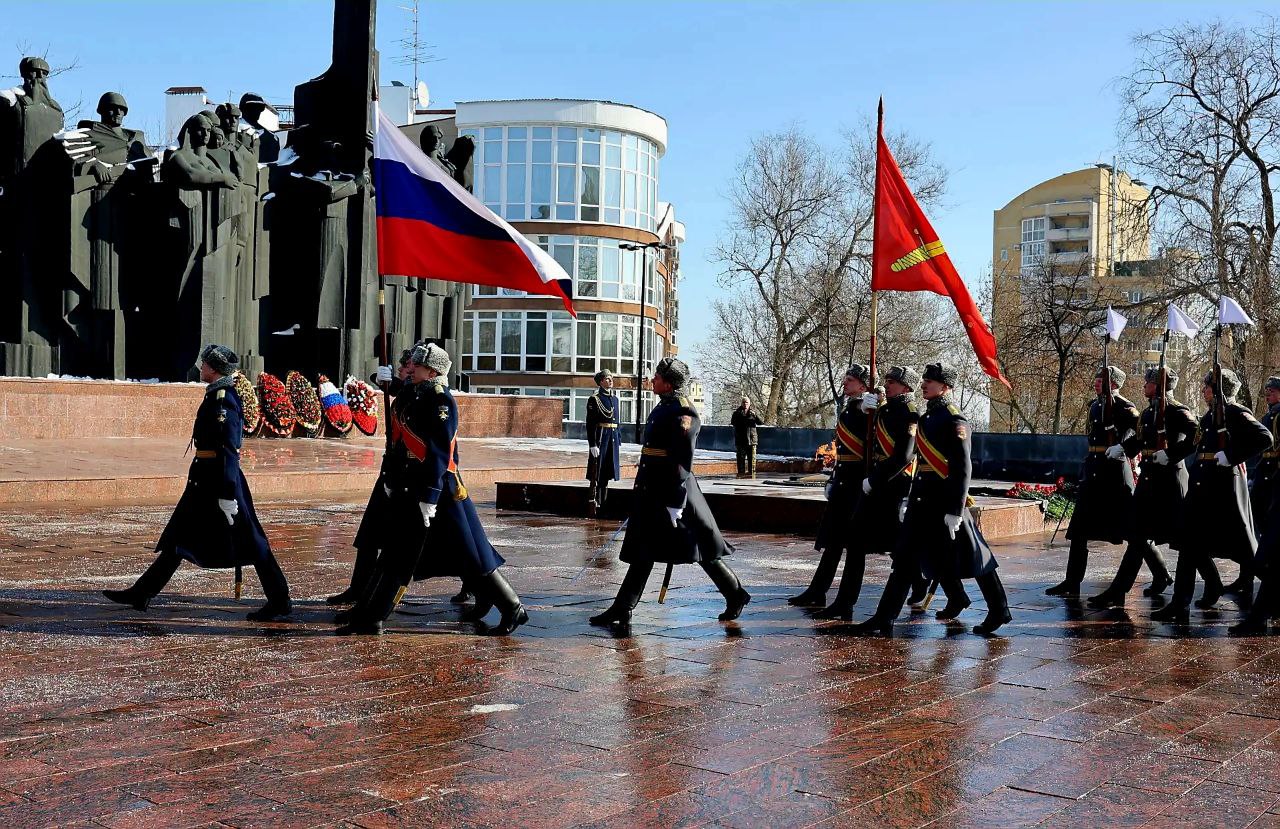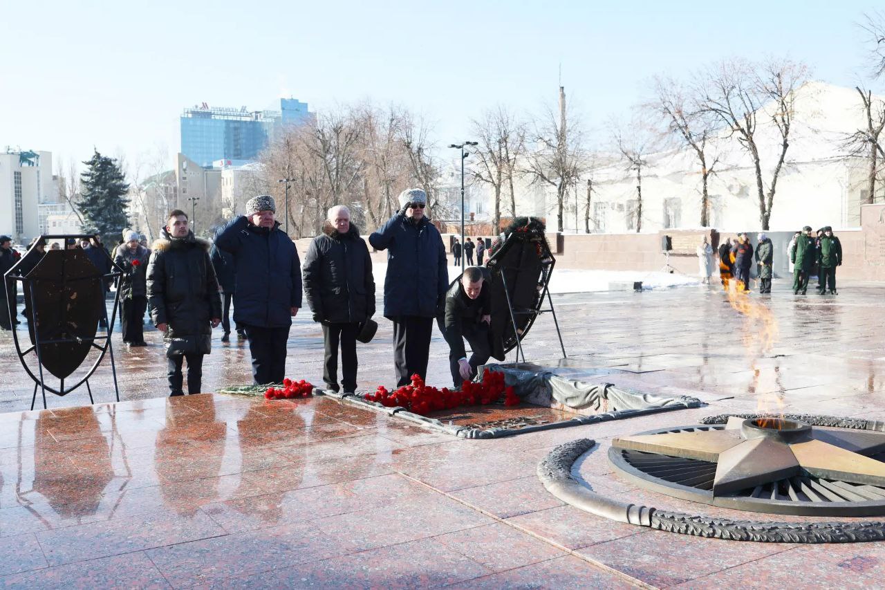 В Воронеже на площади Победы состоялось возложение венков к мемориальному комплексу в честь Дня защитника Отечества. Руководство регионального Главка МВД - полковники Владимир Корчагин и Дмитрий Гвоздовский, а также председатель Совета ветеранов Виктор Тройнин - почтили память павших героев вместе с представителями власти, силовых структур и духовенства.