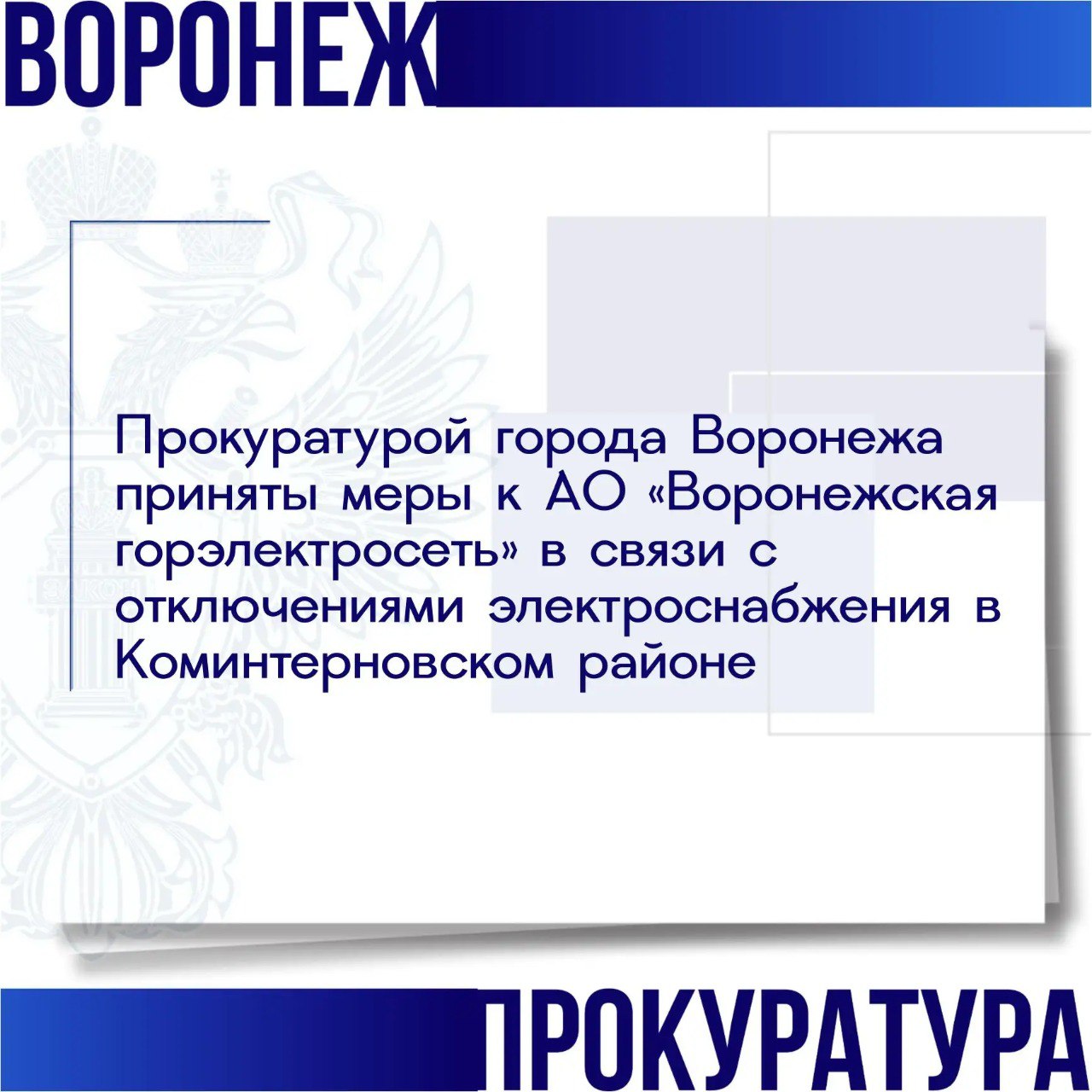 Прокуратурой города Воронежа проведена проверка в связи с отключениями электроснабжения в Коминтерновском районе.