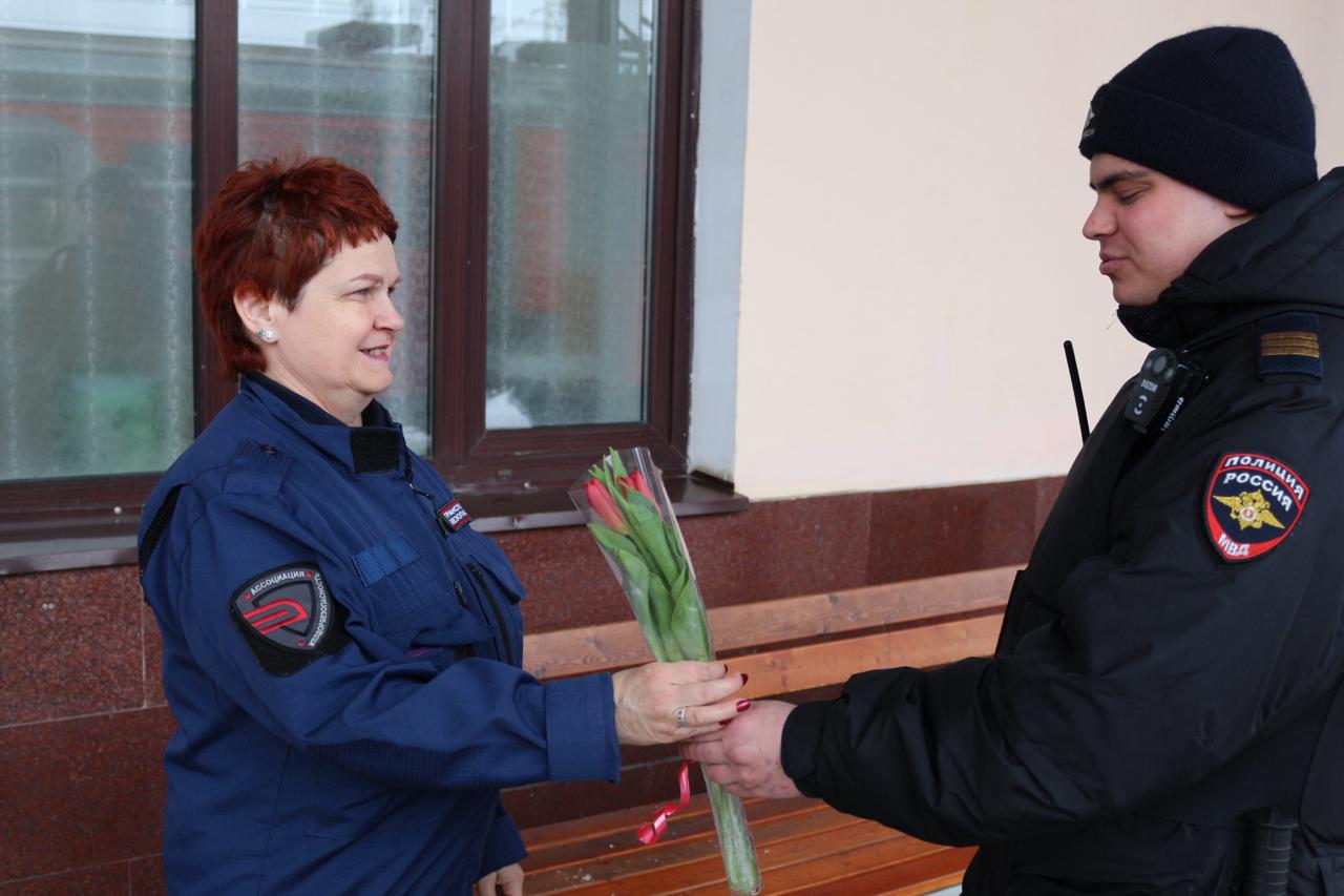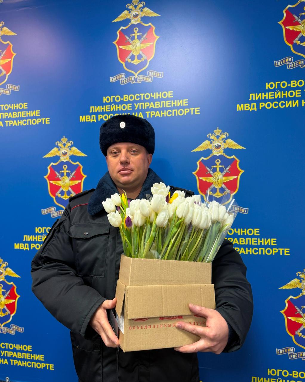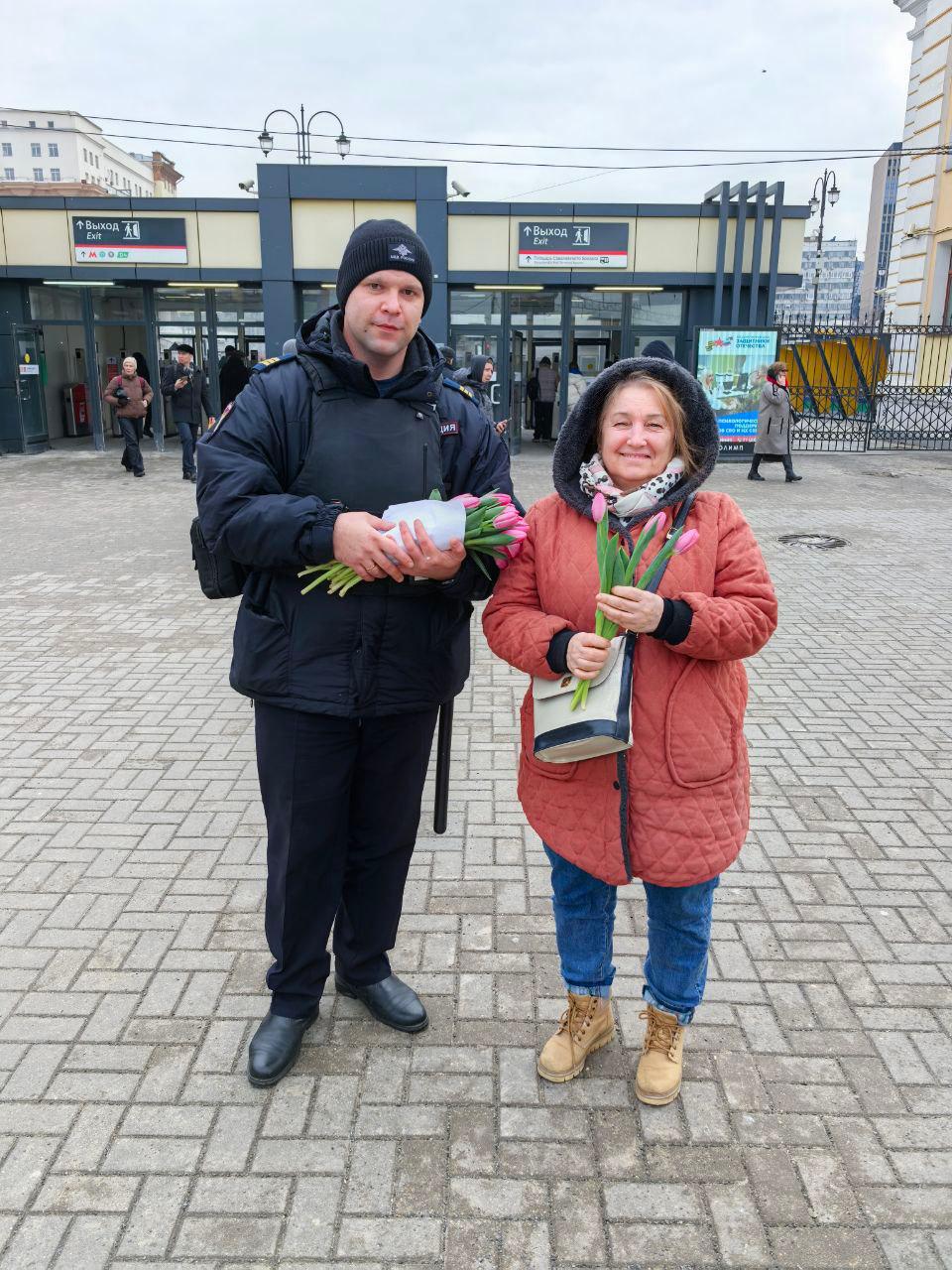 В рамках акции «8 Марта - в каждый дом» транспортные полицейские линейных управлений и отделов дарят женщинам цветы, комплименты, а также наилучшие пожелания!