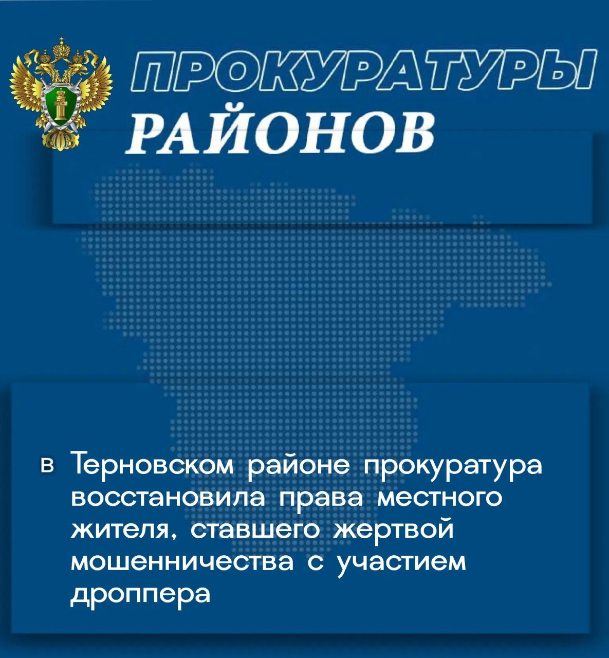 Проведенной прокуратурой Терновского района проверкой установлено, что местный житель перевел денежные средства в размере 75 тыс. рублей на банковский счет, впоследствии используемый злоумышленниками в мошеннической схеме.