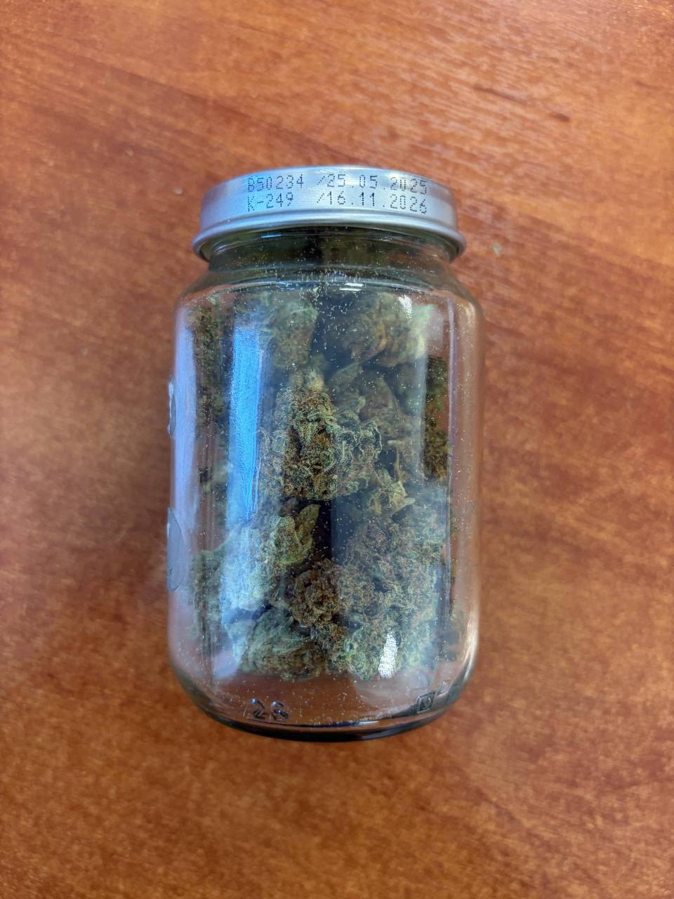 При проведении личного досмотра в одном из отделений рюкзака была обнаружена стеклянная банка с металлической крышкой, внутри которой находилось вещество растительного происхождения.