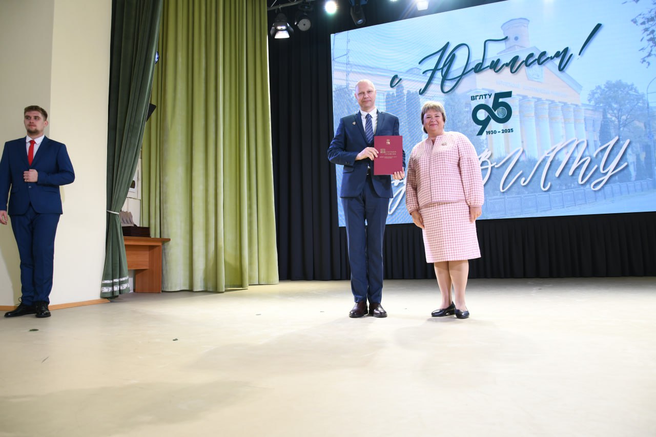 Открылась юбилейная неделя праздничным заседанием Ученого совета ВГЛТУ. На нем Галина Леонидовна поздравила коллектив Воронежского лесотехнического университета с 95-летием и вручила почетные грамоты от имени главы Воронежа Сергея Петрина.
