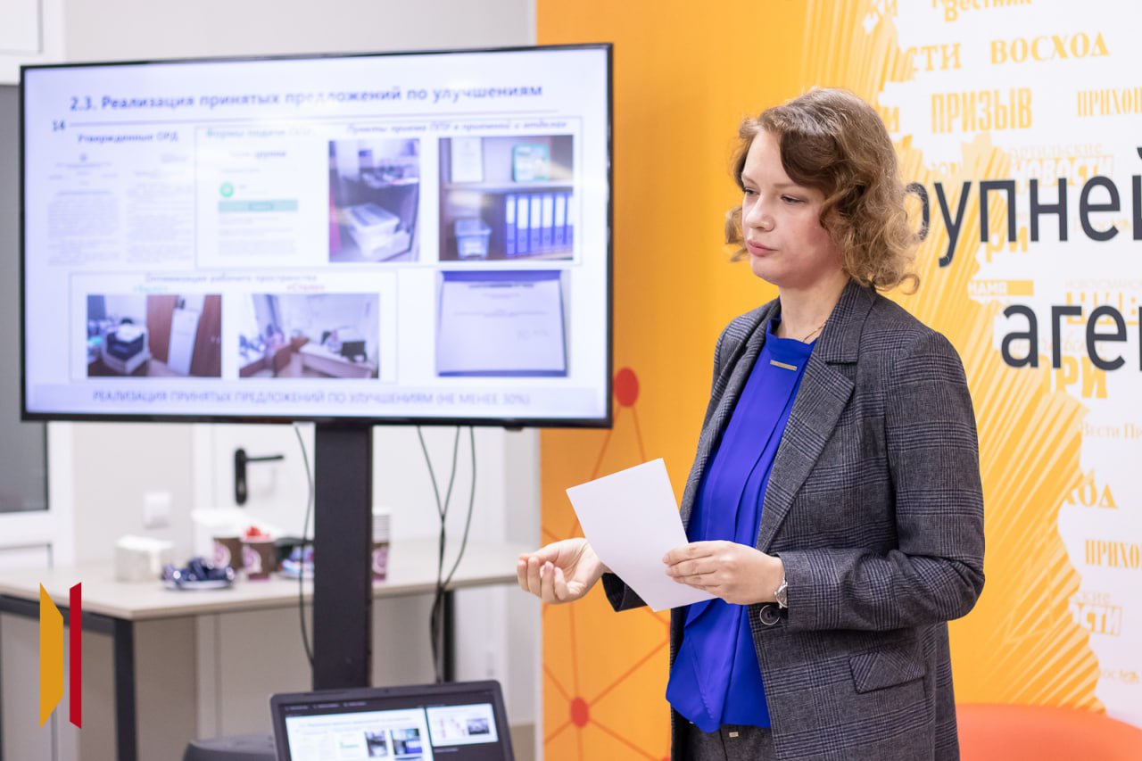 Проекты представила секретарь Центра компетенций министерства внутренней политики по бережливому управлению Екатерина Мельник. Она также представила бережливый проект, который был реализован на базе РИА «Воронеж».
