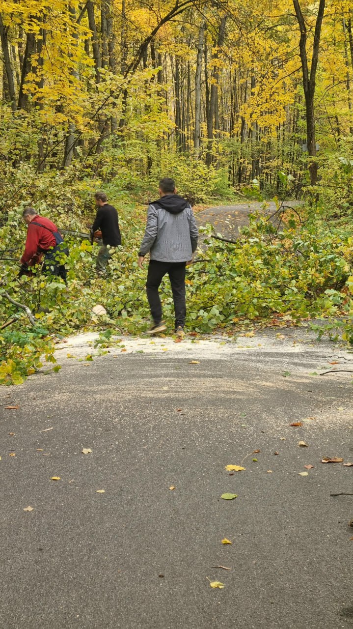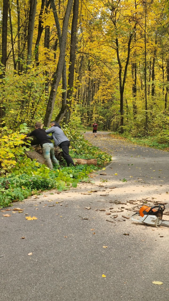 Дерево рухнуло на дорогу спустя несколько минут после того, как Александр Акулов, который убирал лыжероллерную трассу в парке, прошел участок.
