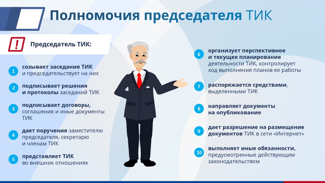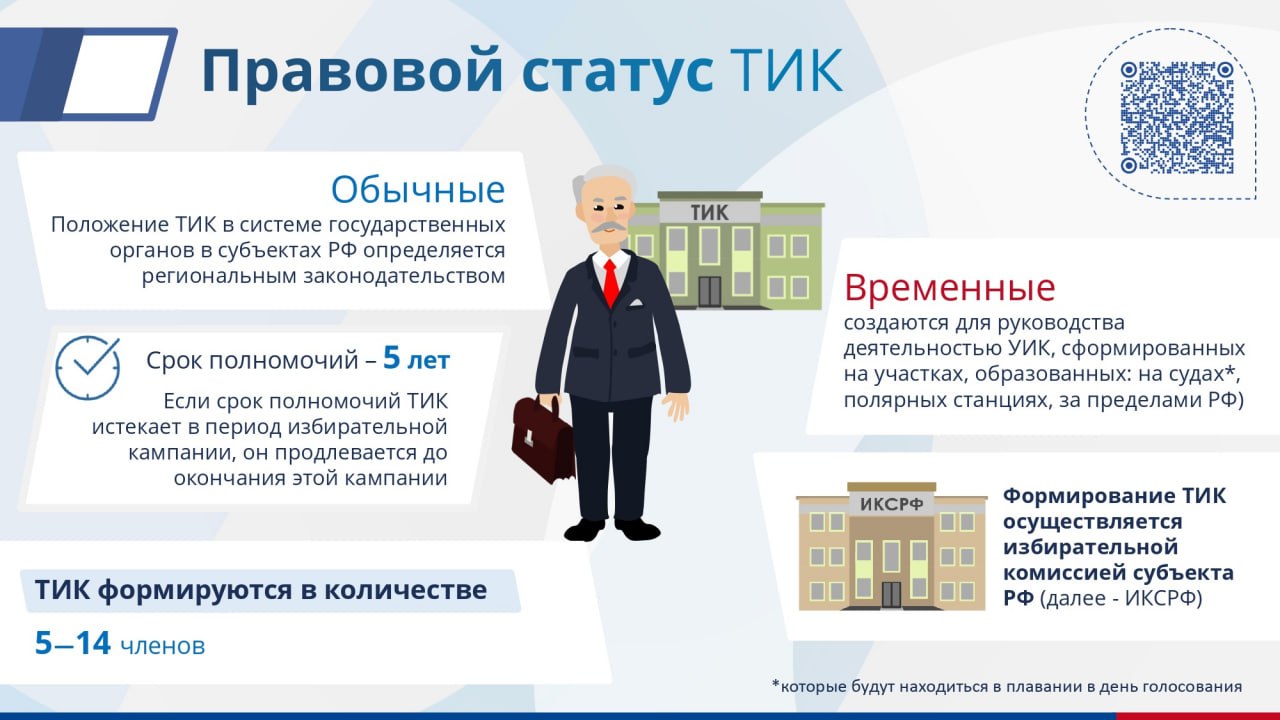 Срок полномочий ТИК – 5 лет. Полномочия ТИК могут быть досрочно прекращены в случае изменения административно-территориального устройства региона.