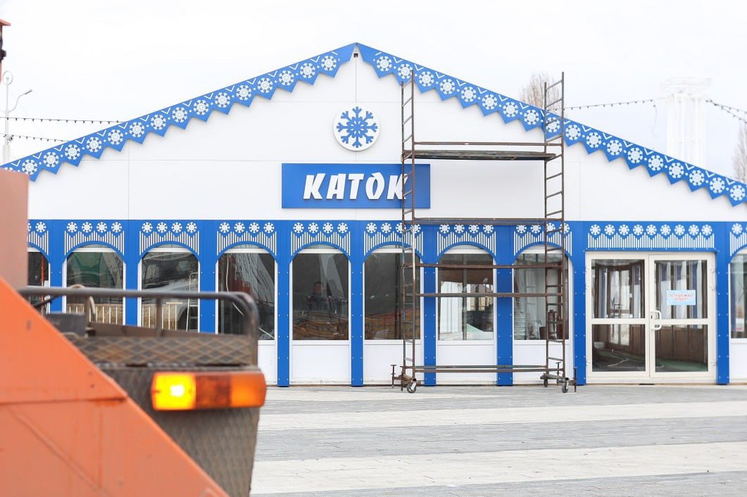 На площади установили павильон для записи новогодних поздравлений и видеообращений бойцам СВО. Продолжается монтаж праздничной иллюминации и двух павильонов для переобувания и проката коньков.