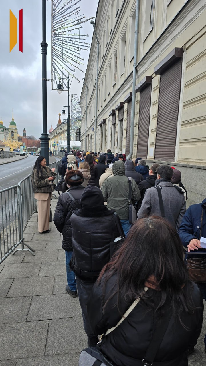 Аккредитованные журналисты выстраиваются в очередь у входа в Гостиный двор, где сегодня пройдет прямая линия и пресс-конференция Владимира Путина. На месте работает корреспондент РИА «Воронеж».
