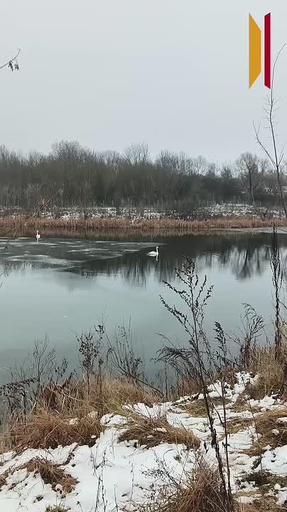 Пара лебедей, которая не улетела в более теплые места вместе с остальными своими сородичами, обитает в Перлевском пруду.