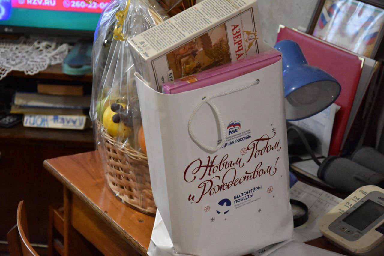 Каждому ветерану вручили новогодние открытки от Губернатора Воронежской области Александра Гусева, главы Воронежа Сергея Петрина и управы района, а также подарки от депутатов партии «Единая Россия» в рамках ежегодной новогодней акции «С Новым годом, ветеран!».