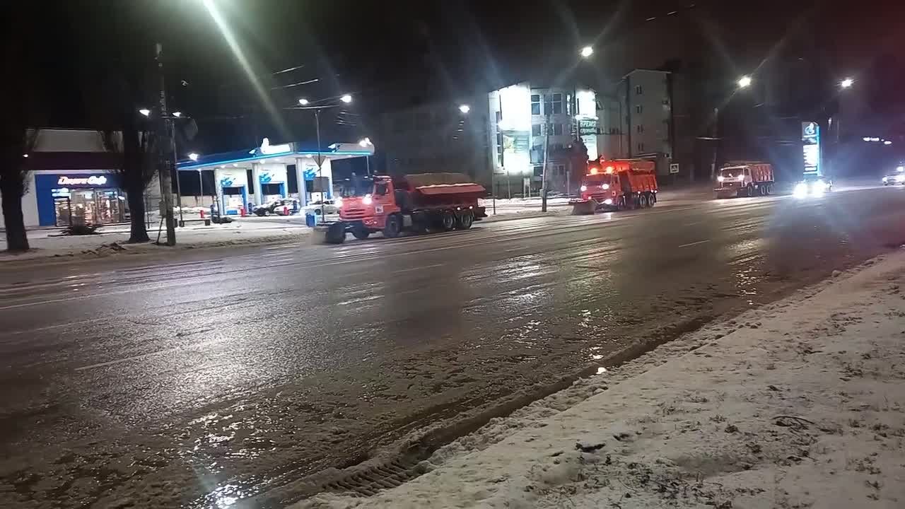 Сегодня ночью в областном центре продолжалась уборка тротуаров и магистралей. Для обработки территорий противогололедными материалами, подметания и вывоза снега задействовались 200 единиц техники. Это пескоразбрасыватели, тракторы со щеткой, малая коммунальная техника, фронтальные погрузчики, самосвалы и другие спецмашины.