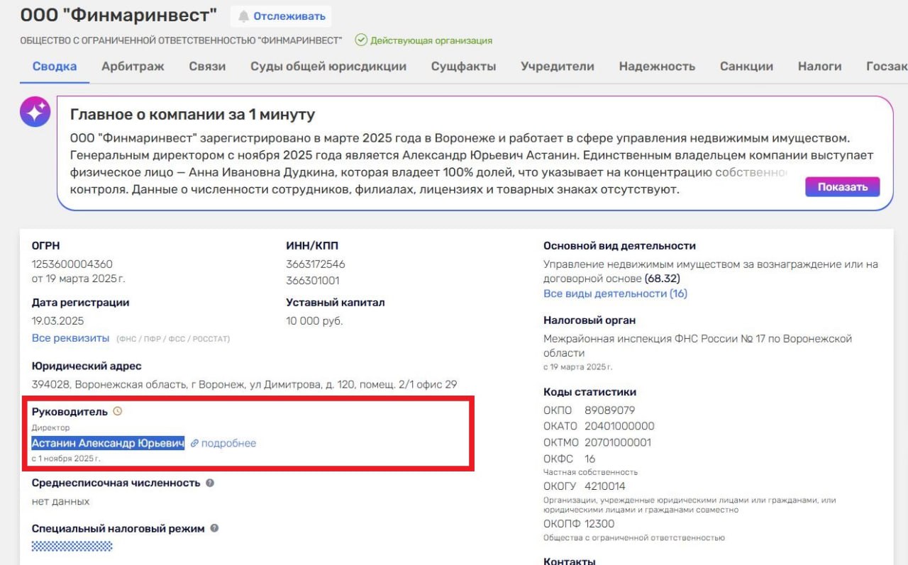 Судя по данным из открытых источников, УК «Финмаринвест» возглавляет Александр Астанин.