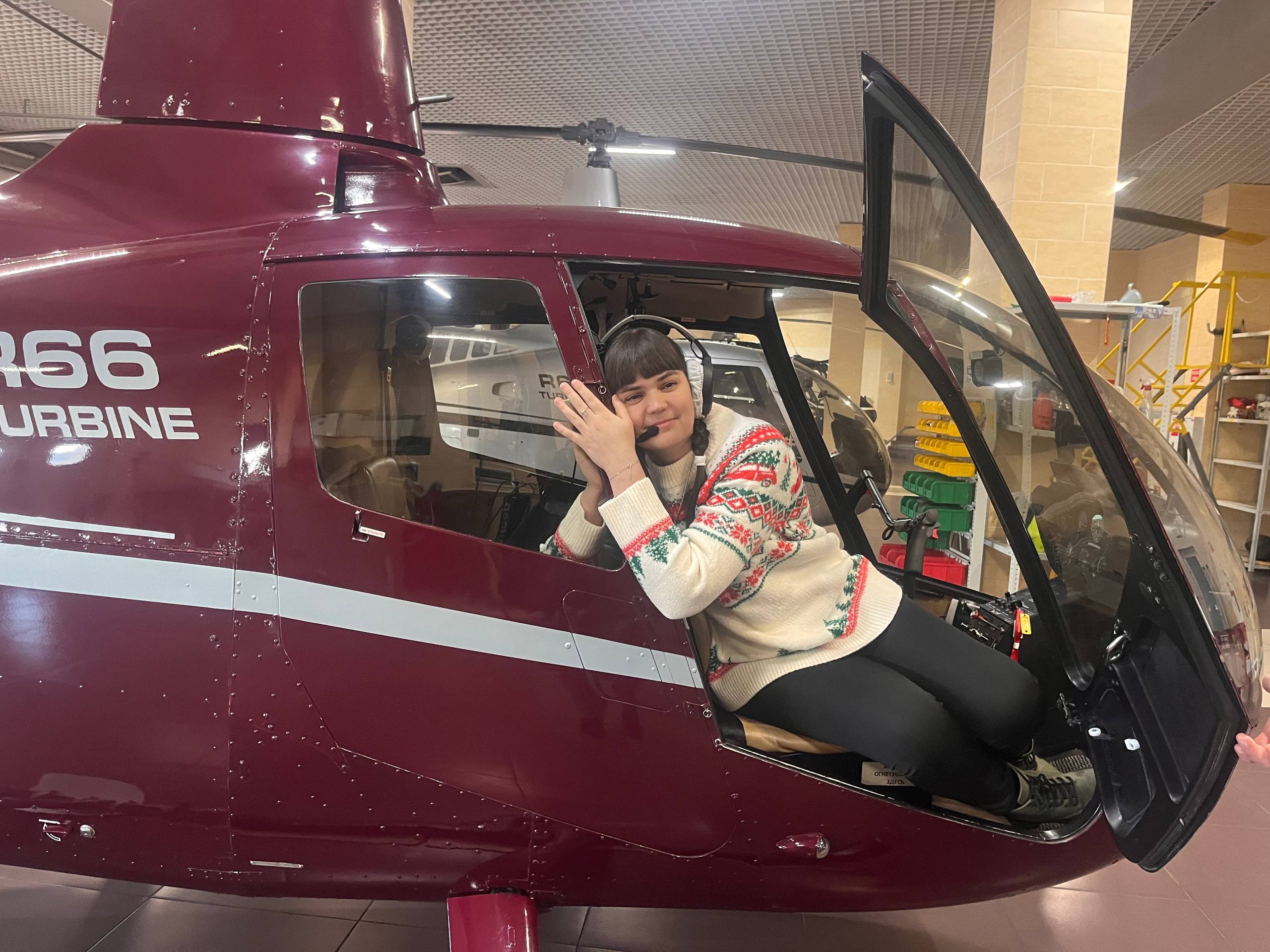 По моему поручению Министерство промышленности и транспорта нашего региона подготовило для Юли особенный новогодний подарок – посещение вертолетного клуба. Требования безопасности пока не позволили подняться в небо, но Юля смогла прикоснуться к своей мечте, сев в кабину вертолета и сделав фотографии на память. Любовь к небу, как она призналась, передалась от мамы, бывшей стюардессы.