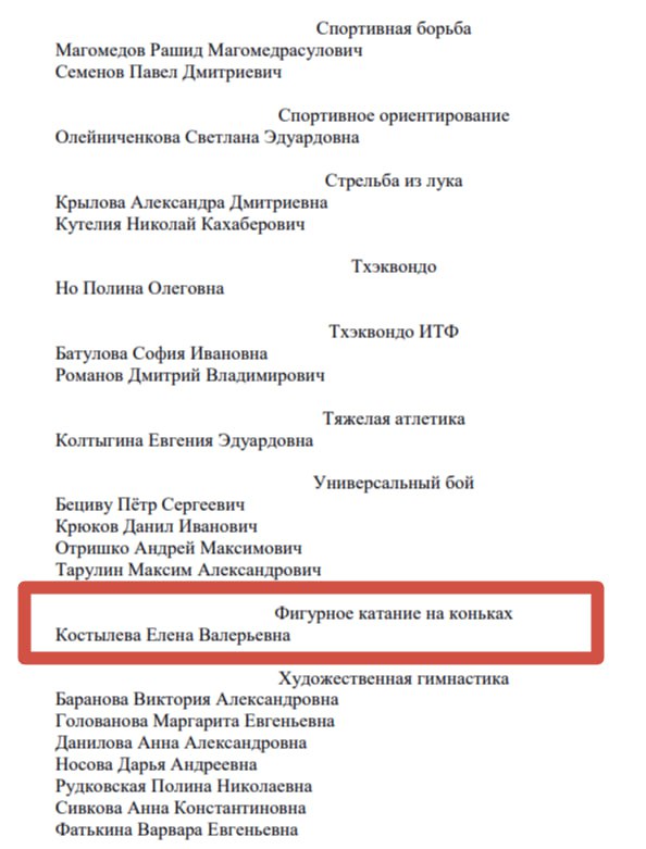 14-летней фигуристке и уроженке Воронежской области Елене Костылевой присвоен спортивный разряд «кандидат в мастера спорта». Соответствующее распоряжение подписал министр физической культуры и спорта Московской области Дмитрий Абаренов.