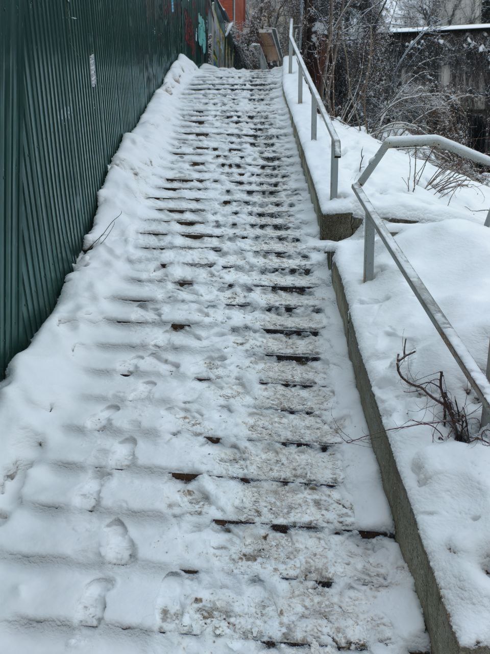 Смоленская, спуск с проспекта Революции. Исторический центр города! Люди идут на работу, учебу. Спуститься просто невозможно. Мне 33, и то спускаться страшно,что уж говорить о пожилых людях. Бардак в городе!