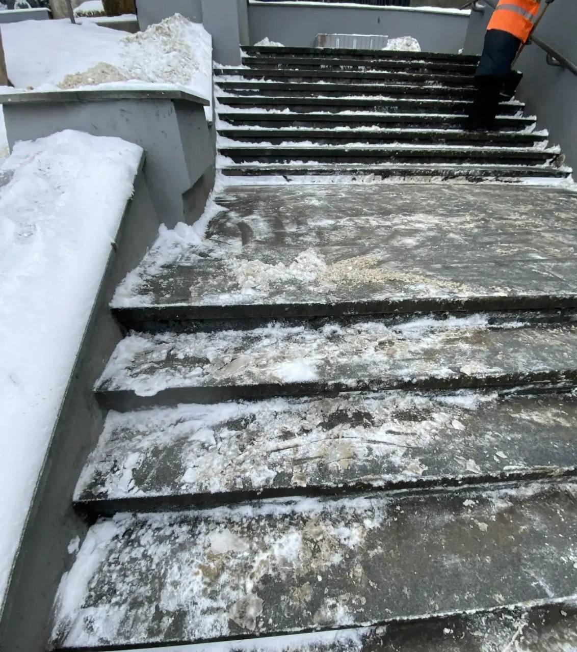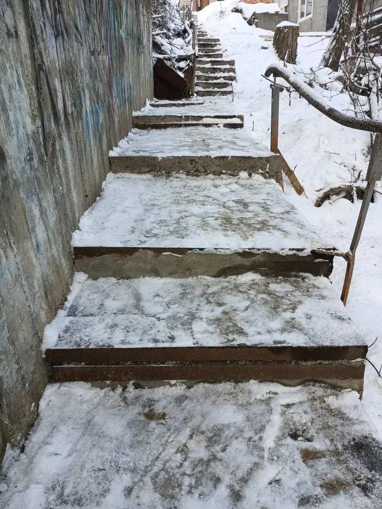 В Центральном районе идет уборка нагорных лестниц от снега и наледи