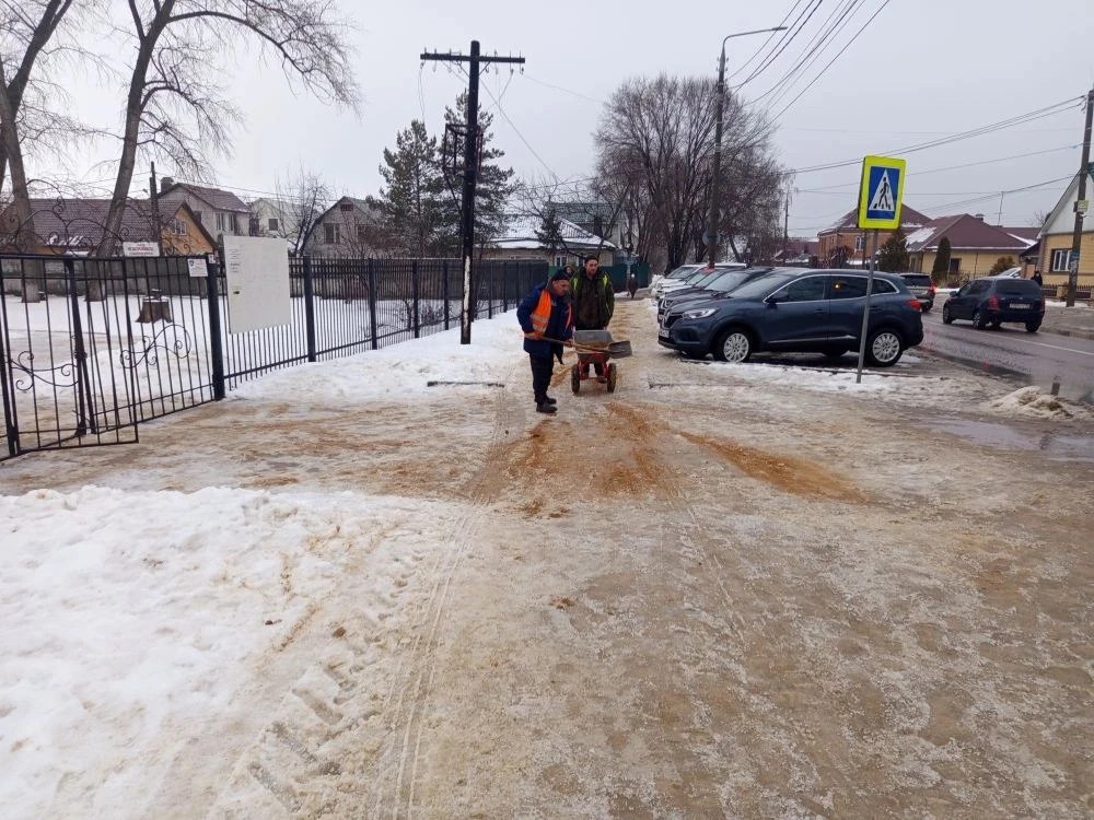 Днем в городе работали 223 единицы техники и 247 дворников. Было использовано около 600 тонн пескосмеси, вывезен 541 кубометр снега.