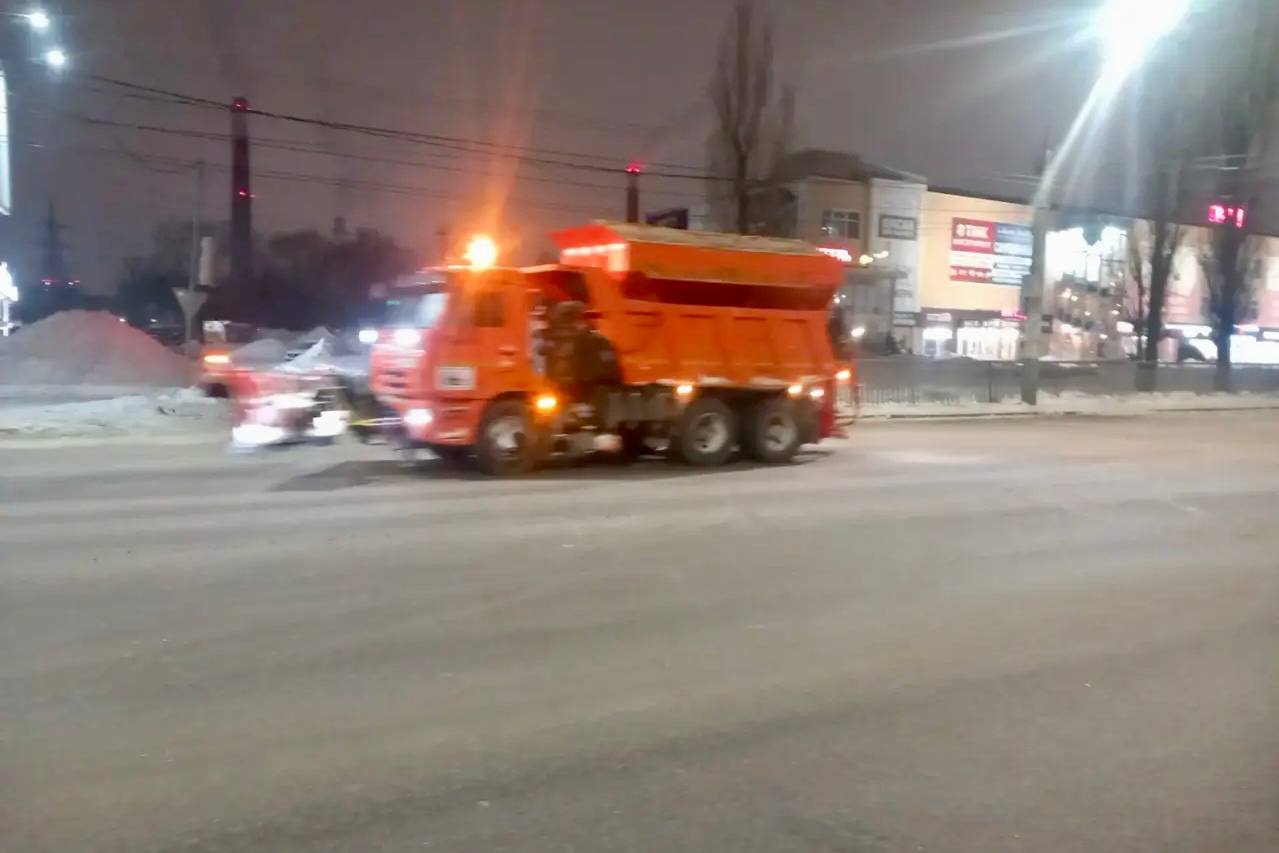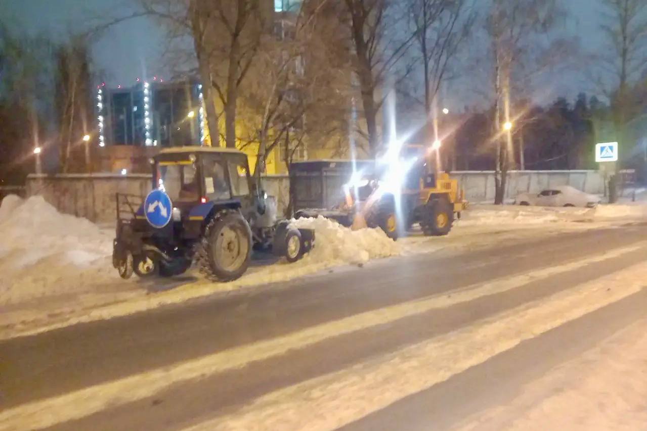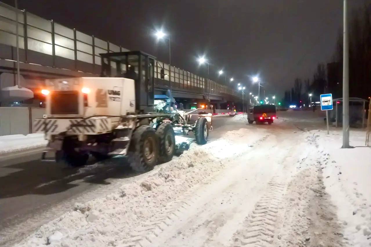 Прошедшей ночью работало почти 30 единиц техники комбината благоустройства, которые были задействованы как в процессе уборки и вывоза снега с улицы Остужева и остановок общественного транспорта на улицах Фёдора Тютчева, Минской, Электровозной, Ленинском проспекте, так и в обработке улично-дорожной сети песко-соляной смесью перед резким потеплением и прогнозируемыми осадками.