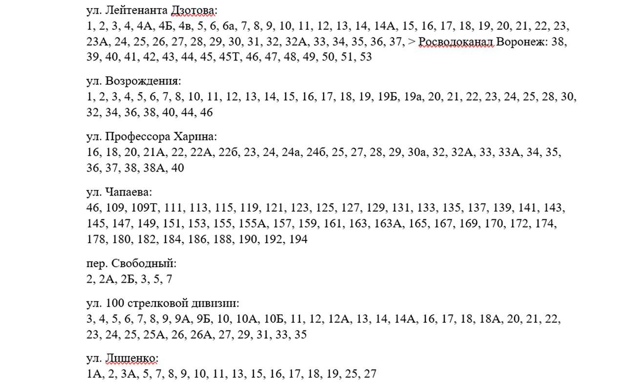 Десятки улиц частного сектора Ленинского района Воронежа остались без холодной воды из-за коммунальной аварии. Специалисты предприятия уже обследовали водопроводные сети и установили, что повреждение находится в нижней части улицы Лишенко – у дома №12.