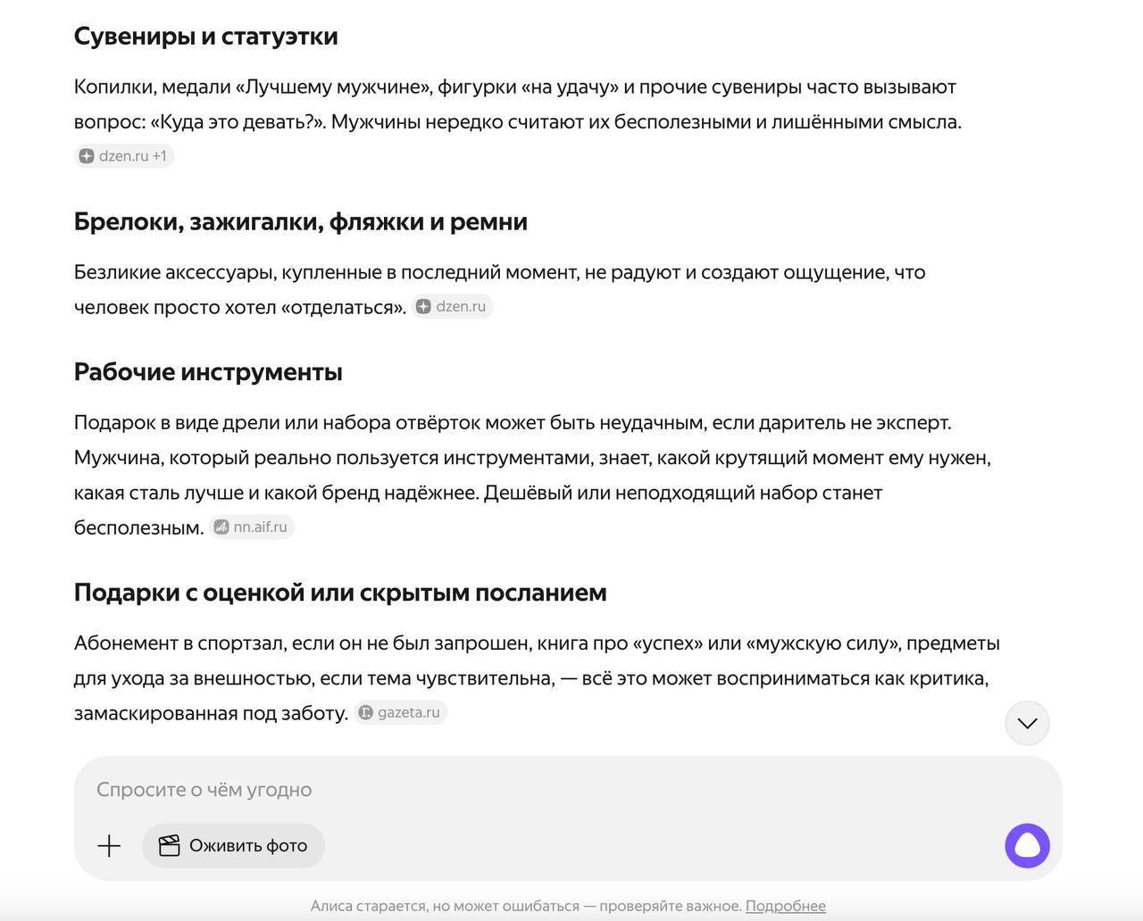 Алиса AI назвала подарки на 23 февраля, которые не нужны никому