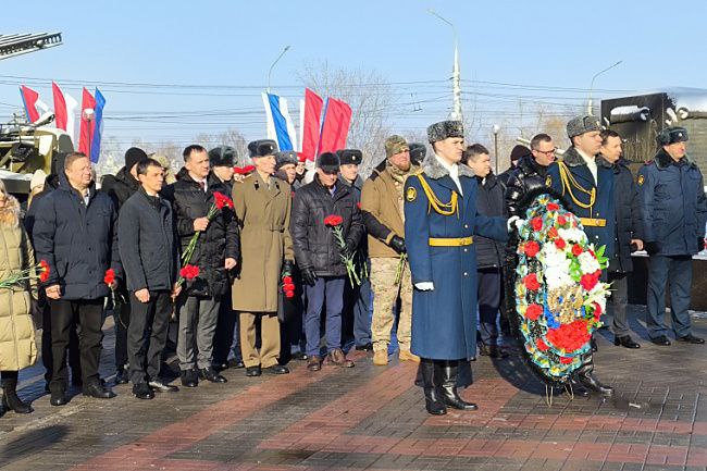В рамках торжественных мероприятий, посвященных Дню защитника Отечества состоялось возложение цветов к братской могиле № 6 защитникам города в парке Патриотов.