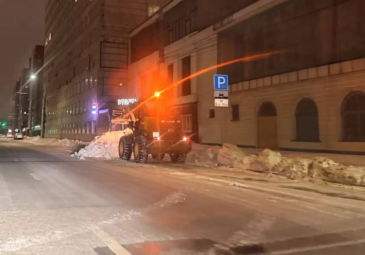 За прошедшую ночь концессионером был организован вывоз 650 кубометров снега с парковочного пространства. Работали 12 единиц спецтехники.