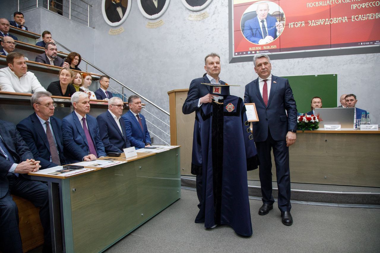 Научная программа совета включала доклады представителей ведущих медвузов страны. По решению участников Игорю Есауленко присвоили звание Почетного профессора ВГМУ. Сын Игоря Эдуардовича передал мантию и диплом в музей вуза.