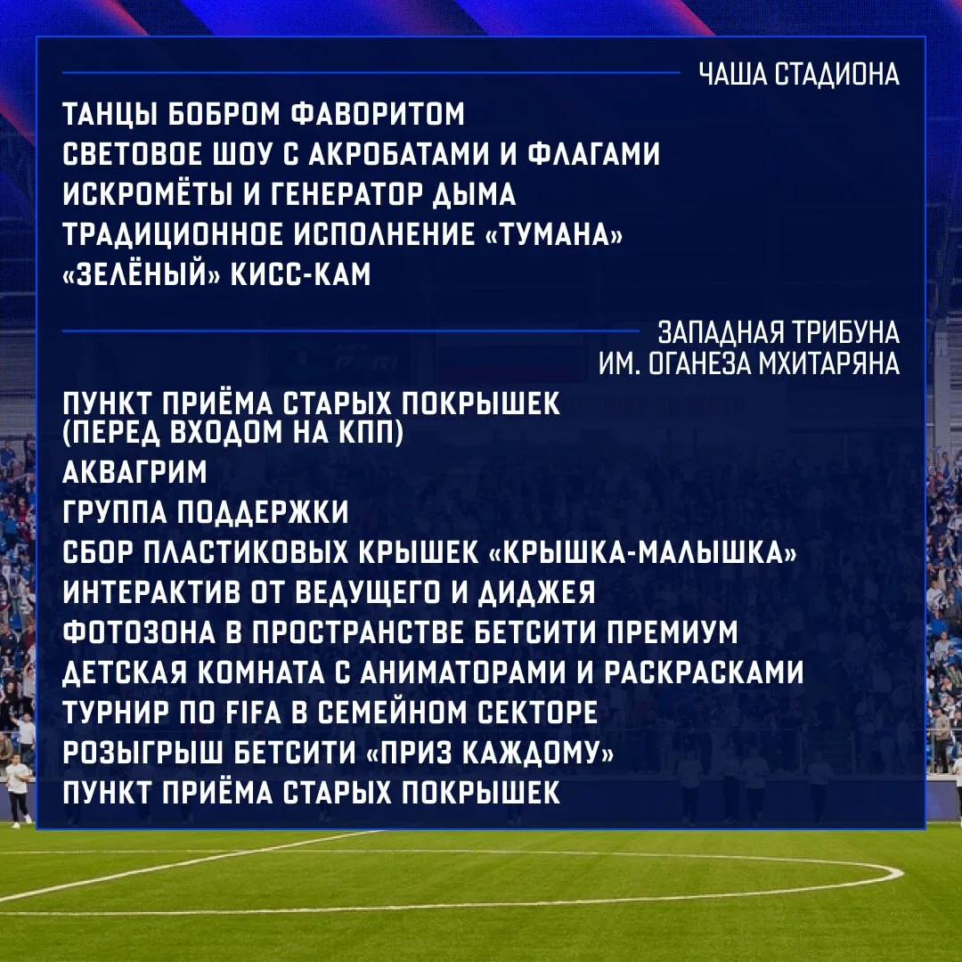 Кроме того, на территории стадиона будет организован сбор пластиковых крышек. Желающие смогут внести вклад в чистоту природы.