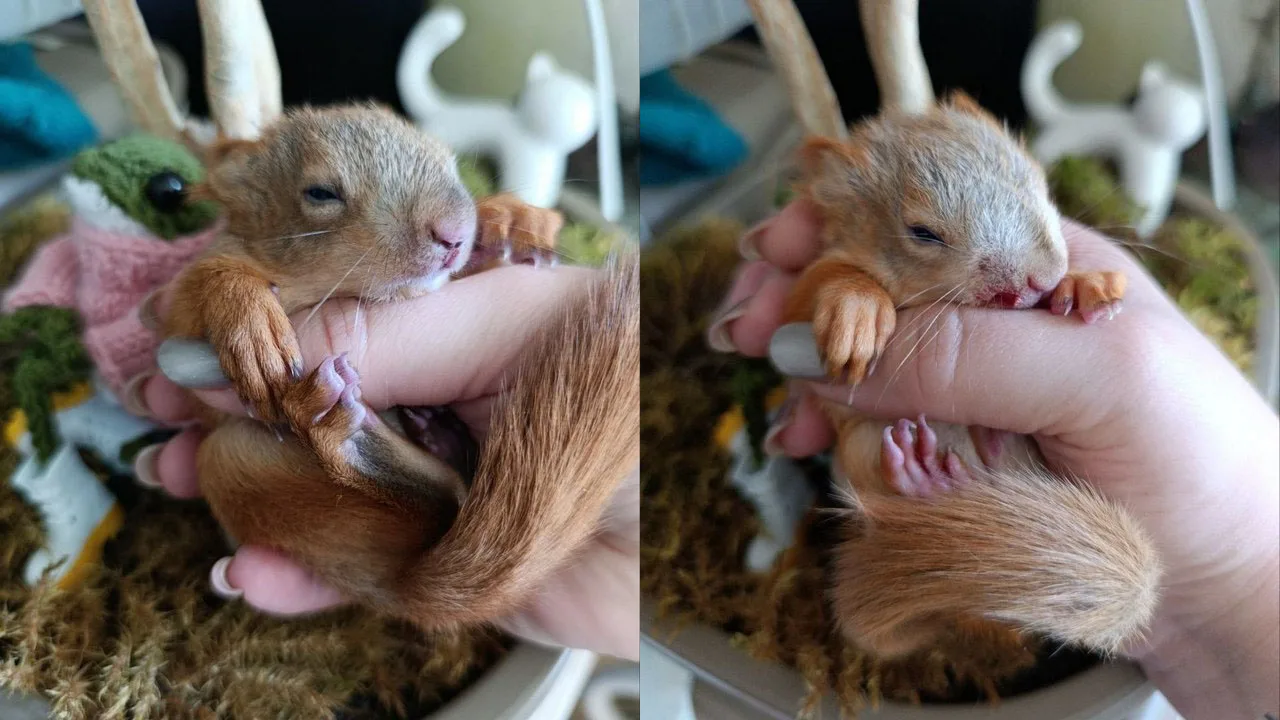 В парке Оптимистов малышей нашла и спасла гулявшая с собакой женщина. Малышей передали в центр помощи диким животным «Сердце леса». Оба мальчики, обоим чуть больше месяца. У одного небольшая рваная рана верхней губы и мочеиспускание с примесью крови. У второго признаки черепно-мозговой травмы и разбит нос. Сейчас бельчата под наблюдением специалистов.