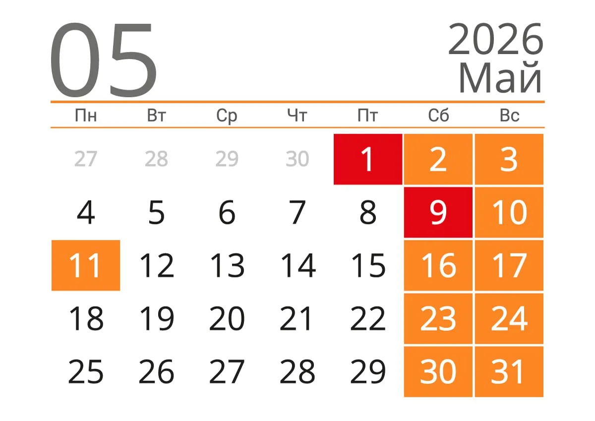 В целом в мае будет 19 рабочих и 12 выходных дней.
