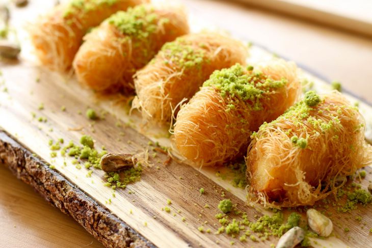Чтобы сделать такое угощение, потребуется взять 300 граммов фисташек и немного для украшения, 400 граммов воды, 600 граммов сахара, половину лимона, по 450 граммов сливочного масла и теста фило.