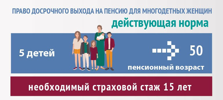Для того чтобы достичь пенсионного возраста в 50 лет, многодетной матери нужно выполнить следующие условия: