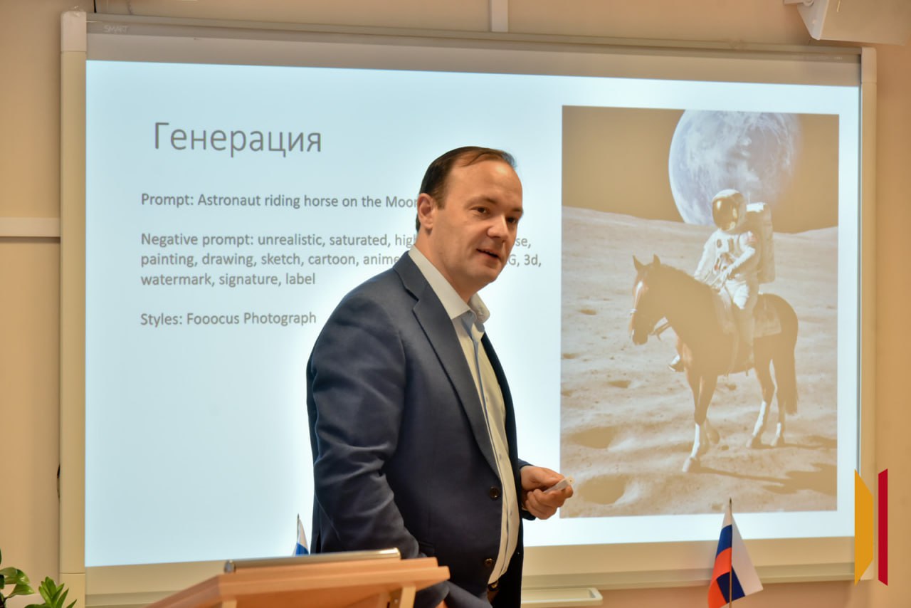 Министр цифрового развития Воронежской области Денис Волков рассказал школьникам, как работают нейросети
