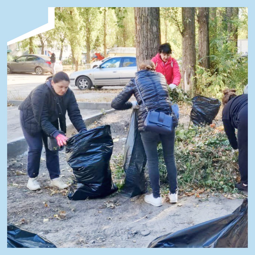 Осенью упор делается на уборку мусора и сухой листвы. Работы выполняются в разных уголках района и включают общественные пространства, прилегающие к различным учреждениям участки, придомовые территории и территории в секторе индивидуальной жилой застройки.