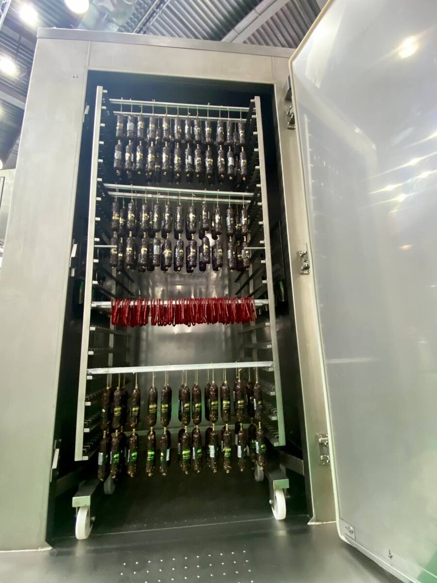 На выставочном стенде представлена инновационная установка для ферментации салями, способная обрабатывать рамки длиной до 5 метров. Это не только экономит время, но и обеспечивает высокое качество конечного продукта. Удобная система загрузки и выгрузки позволяет производителям работать более эффективно и сосредоточиться на творческом процессе.