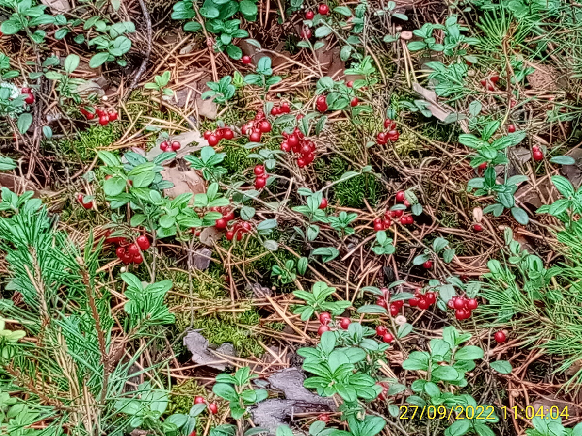 Хотя поиски грибов не увенчались успехом, неожиданной находкой стали спелые брусники. Их изобилие отвлекло внимание грибников и добавило положительных эмоций в этот день, заменив разочарование от недостатка грибов.