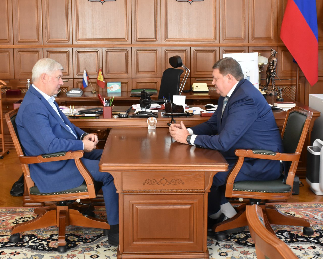 Губернатор Александр Гусев поздравляет с 60-летием Александра Сысоева, ректора Воронежской государственной академии спорта: