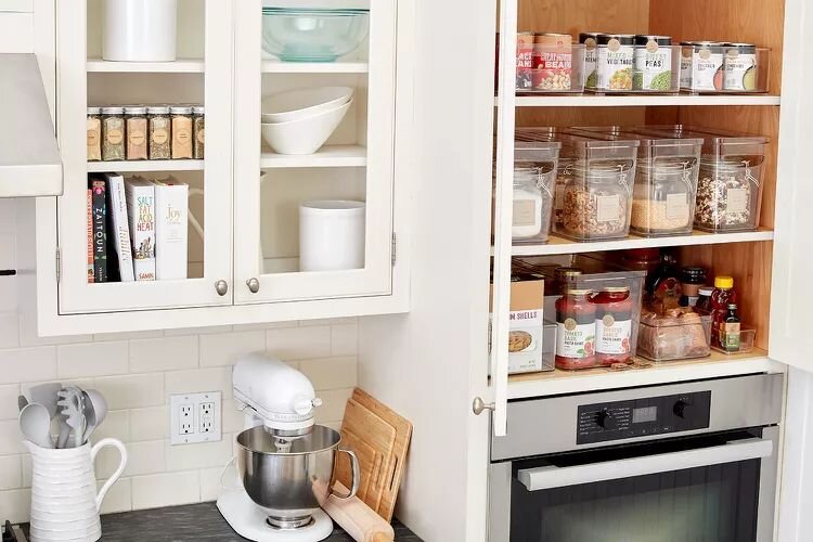 - Эстетика и порядок: Сравните: шкаф, полный разноцветных упаковок, и аккуратно организованные контейнеры. Второй вариант будет выглядеть гораздо более привлекательно.