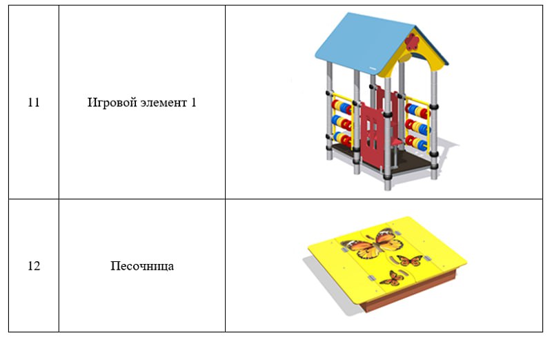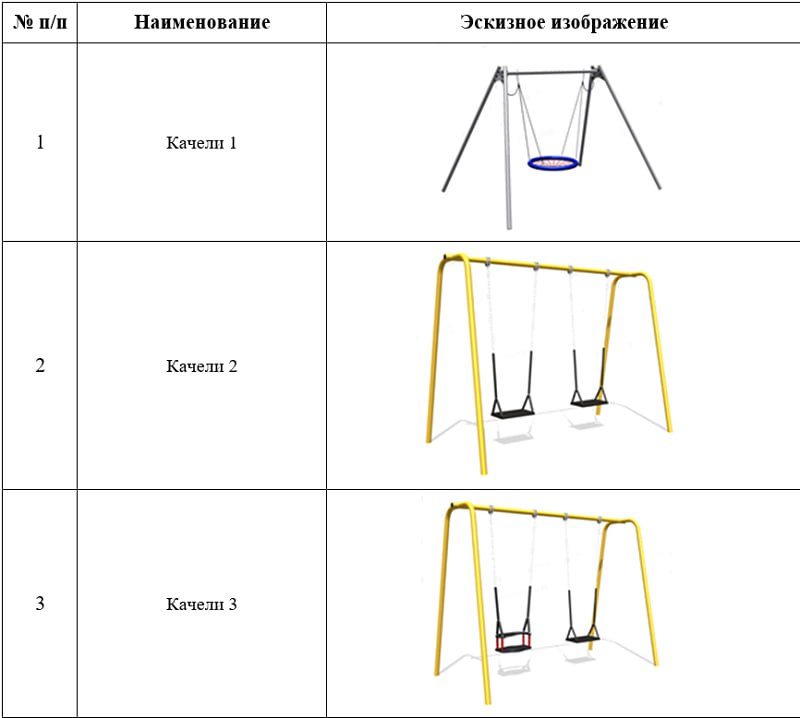 Качели, качалка-балансир и «Игровой элемент 1» (есть на фото).